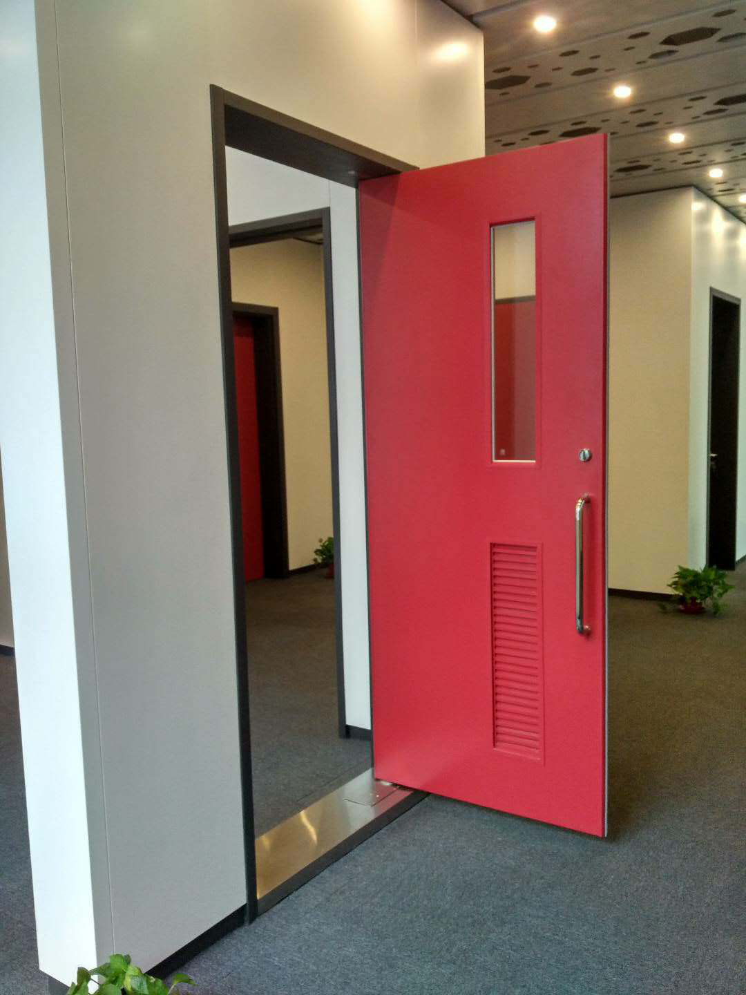 自由門是以熱熔鍍鋅鋼板作為門框和門扇的基本材質(zhì),在門扇內(nèi)部采用仿生學技術填實環(huán)保蜂窩紙,表面采用靜電粉末噴涂或覆高檔木紋膜,最后配以高檔五金件。